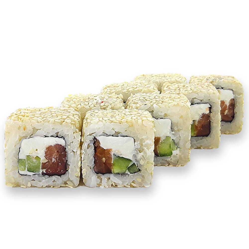 Сливочный сыр, филе лосося, огурчик, рис, нори.