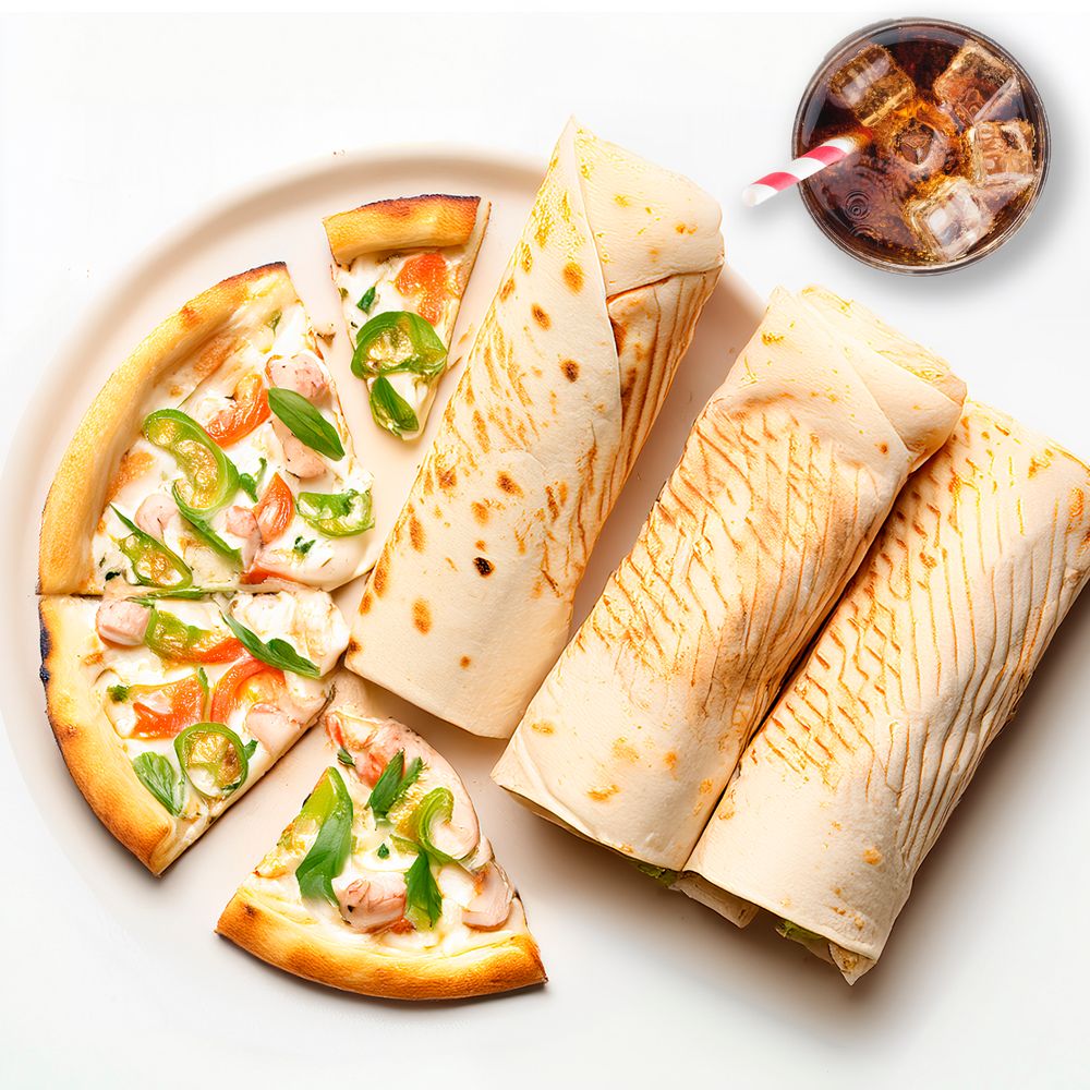 Пицца "Национальная" 30см, три шавермы с курицей и Кока-Кола 1л
