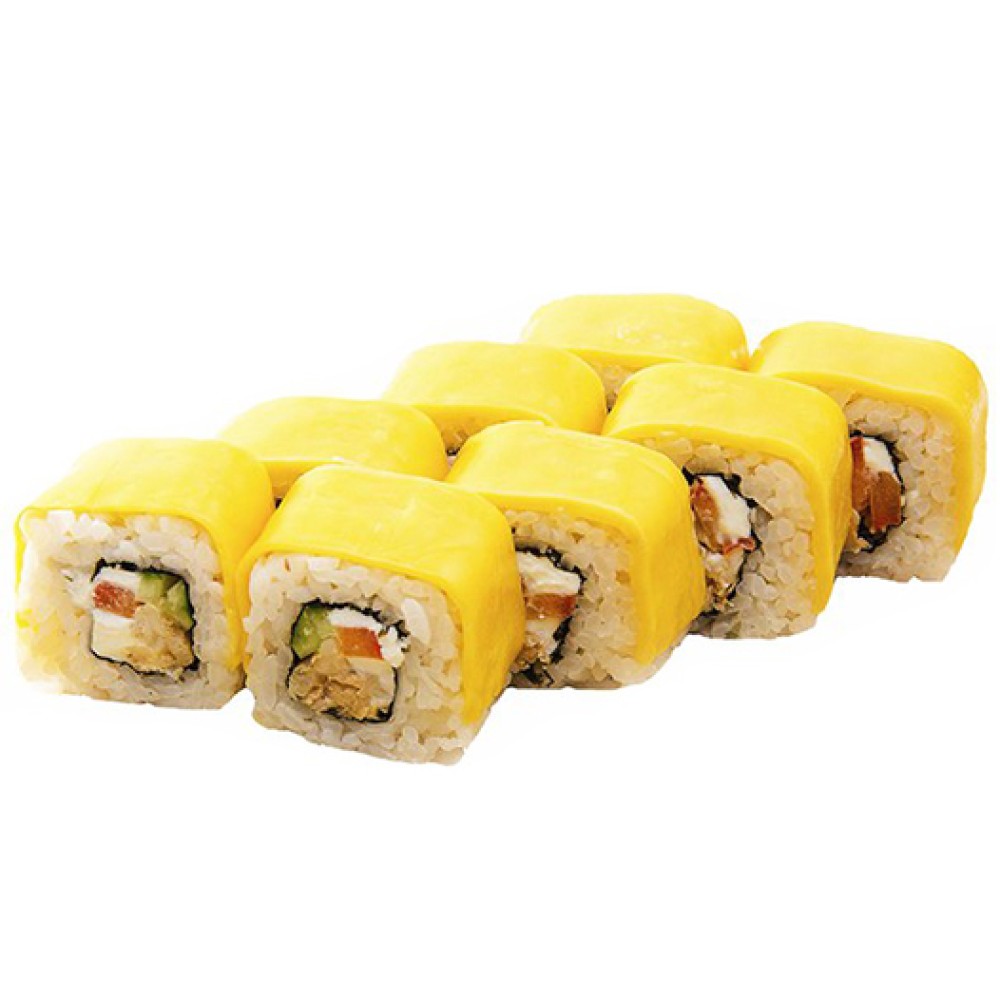 Креветка в кляре, сыр Филадельфия, сыр Хохланд, нори.